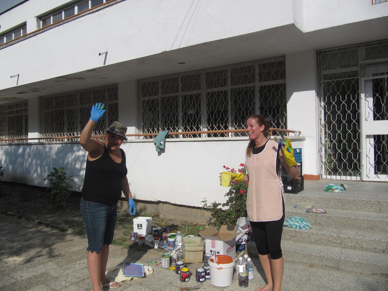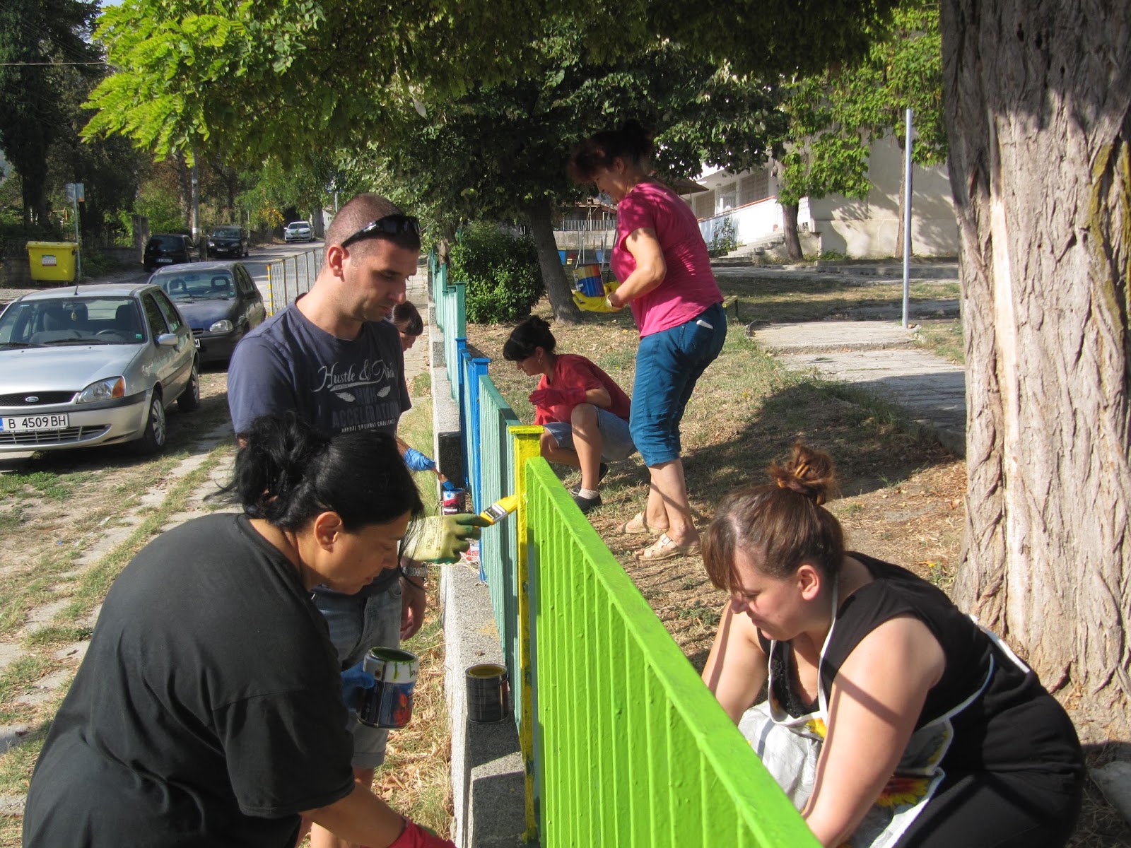 Служители и потребители на услуги в близкия Дневен център пък се заеха с освежаването на градинската мебел в двора на сградата.