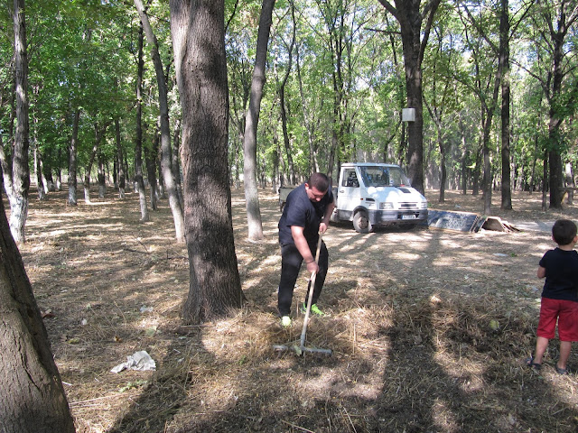 Кметът Свилен Шитов и неговият син Борис-Михаил надянаха ръкавици, за да почистят парка в местността Разсадника, където в неделния ден, на новоизградената открита сцена, ще се проведе осмото издание на Празника на пенсионера.