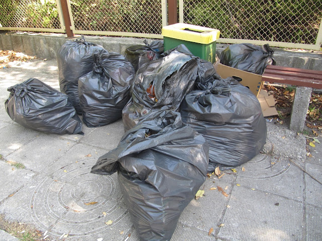 Равносметката от акцията в местността Разсадника е няколко чувала отпадъци, сред които ферментирали дини, пластмасови бутилки и чаши, фасове, кенчета, джапанки и какво ли не. Горе-долу толкова бяха събрали и доброволците, които разчистваха обновения парк "Албена".