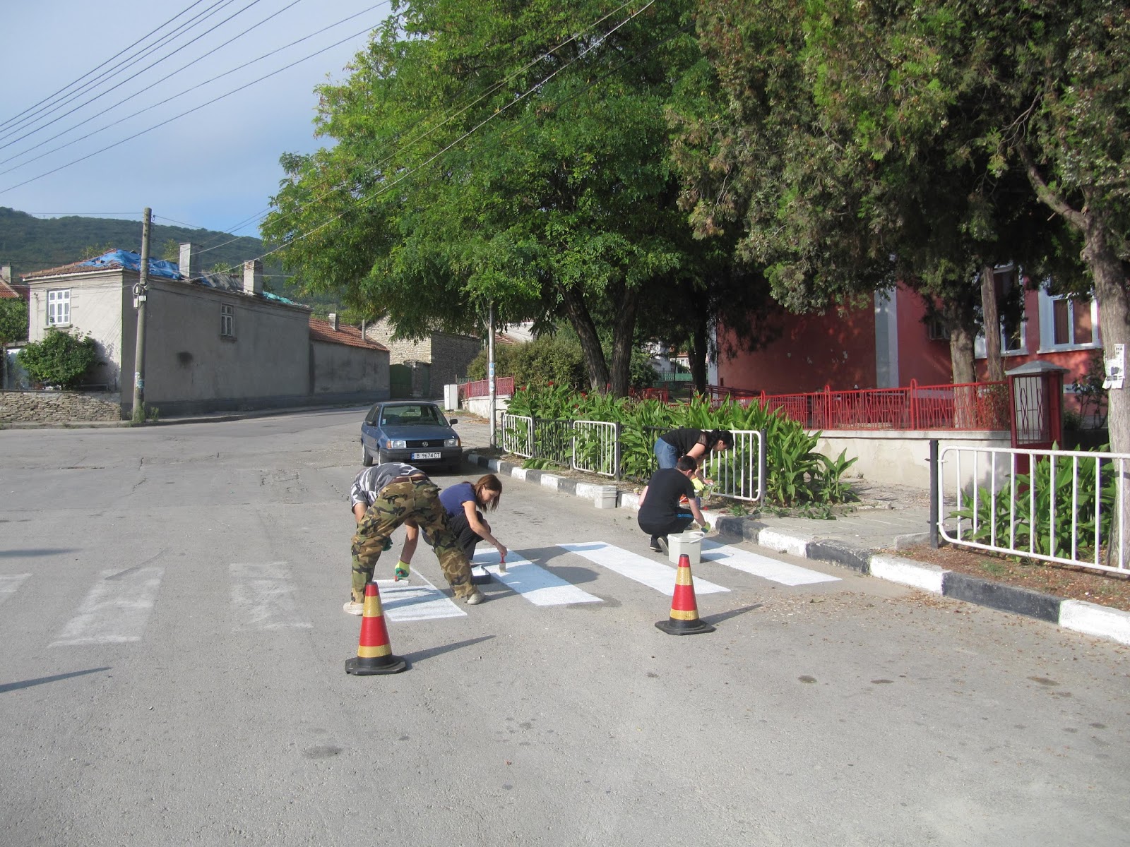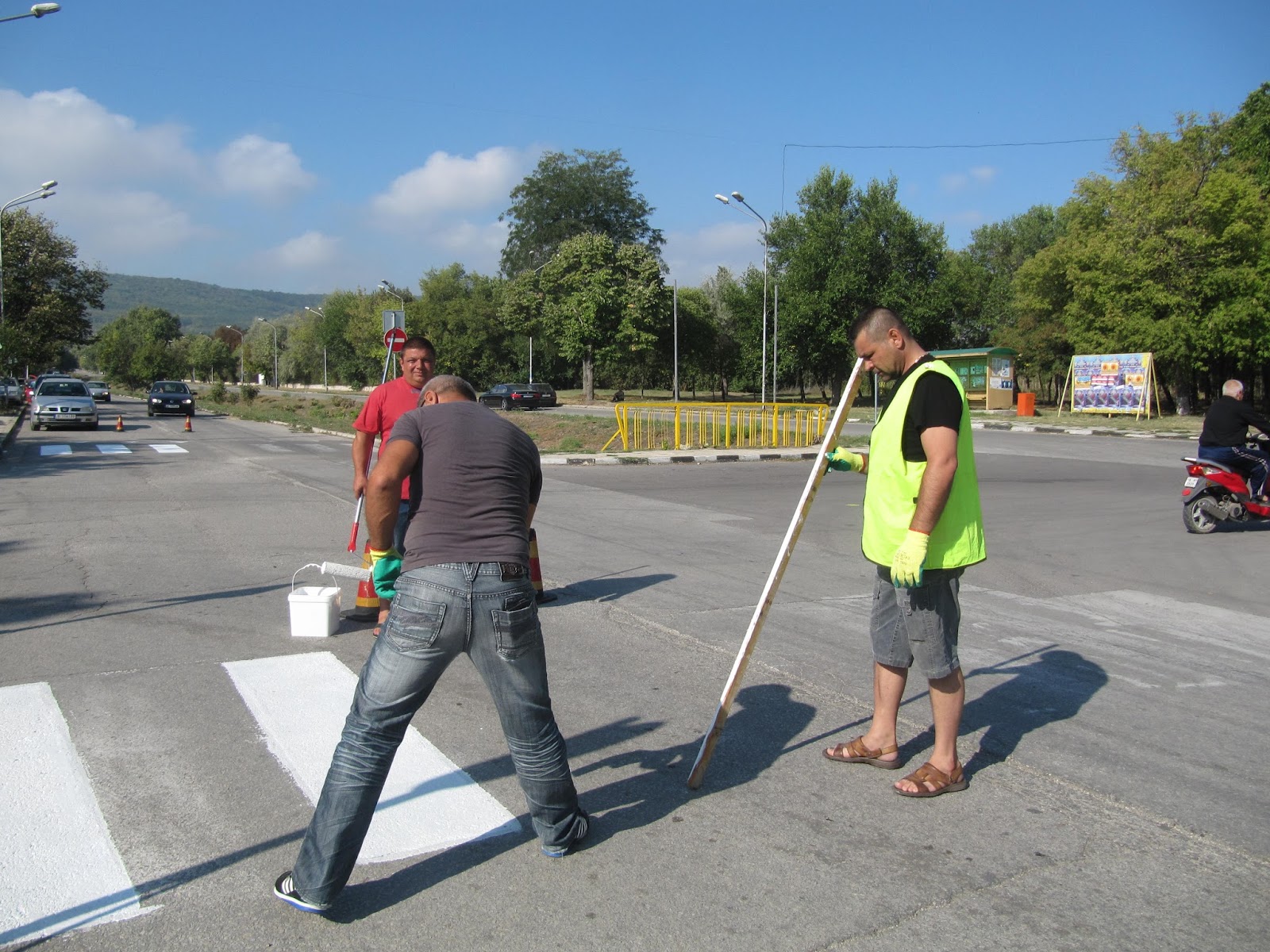Друга група общински служители, начело със заместник-кмета Донка Йорданова и директора на Дневния център за хора с увреждания Снежана Дянкова, се заеха с боядисването на пешеходните пътеки.