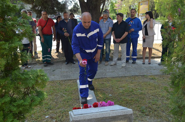 Кратко слово изнесе Красимир Кръстев – председател на Националната федерация на труда „Химия и индустрия“, който наблегна на отговорноста на всички работници за безопасноста на труда и непрекъснатата грижа на всеки за себе си и за колегите си, за да не носят на своите близки скръб, а само любов и щастие.