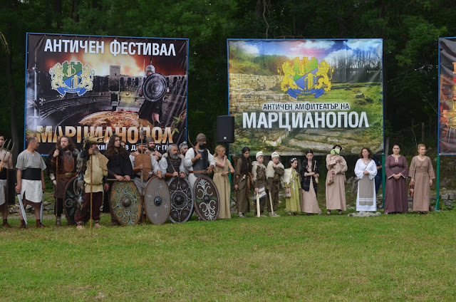 Предвождана от червена колесница, разноцветната колона от мъже, жени и деца, докарани в различни типове тракийски, римски и варварски облекла, тръгна от Музея на мозайките, за да стигне до руините на античния амфитеатър на Марцианопол, който се превърна в арена на зрелищни ритуали и битки, огласени от древни мелодии и пронизителни викове.