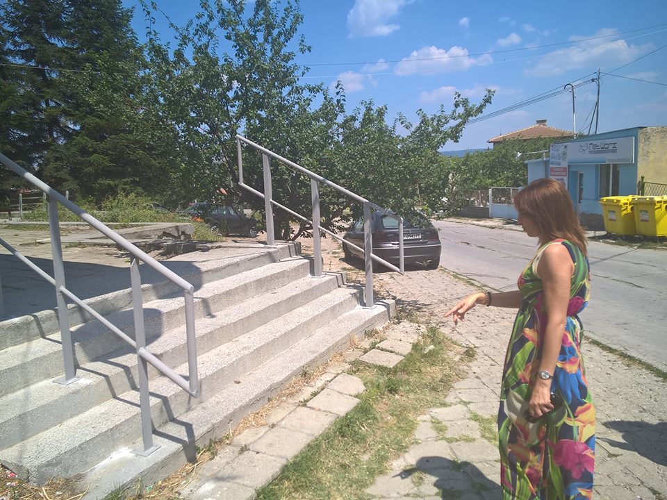 На партера на зданието са разположени пощенска станция и аптека и човекопотокът там е по-интензивен. За възрастните хора и трудноподвижните лица е проблем да изкачват стъпалата поради липса на опора. Това наложи да се монтират металните перила, което днес бе сторено от работници на "ПАРТНЕР – ЖСП“.