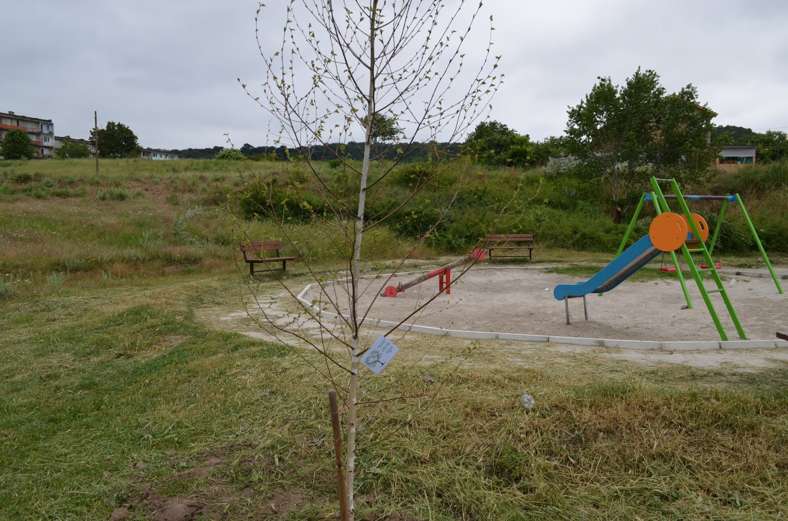 Най-новата детска площадка в квартал "Повеляново", която се намира пред общинската кафе-сладкарница "КъртикЪ", се сдоби с две брезички. За в бъдеще те ще пазят сянка на малчуганите, но и ще пречистват въздуха в жилищния район, на чиято територия е разположена южната промишлена зона на Девня. Общински работници днес засадиха млада дървесна растителност и в градинката на площада пред Младежкия дом, както и в околоблокови пространства.